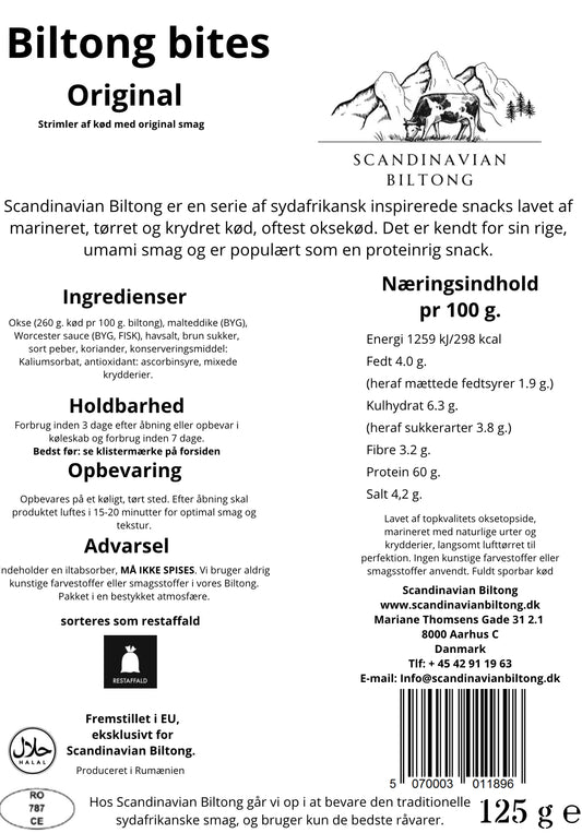 Biltong bites er små, mundrette stykker af biltong, som er en type...